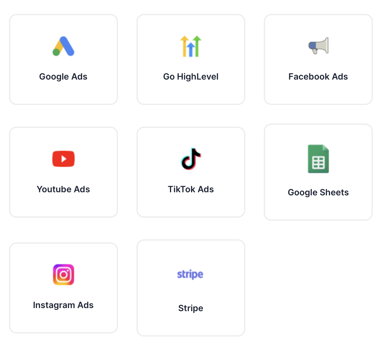 Our solution seamlessly integrates with a variety of popular marketing platforms, and in the event that a specific platform is not currently supported, we offer the capability to connect it through API integration and utilizing Google Sheets as an intermediary.